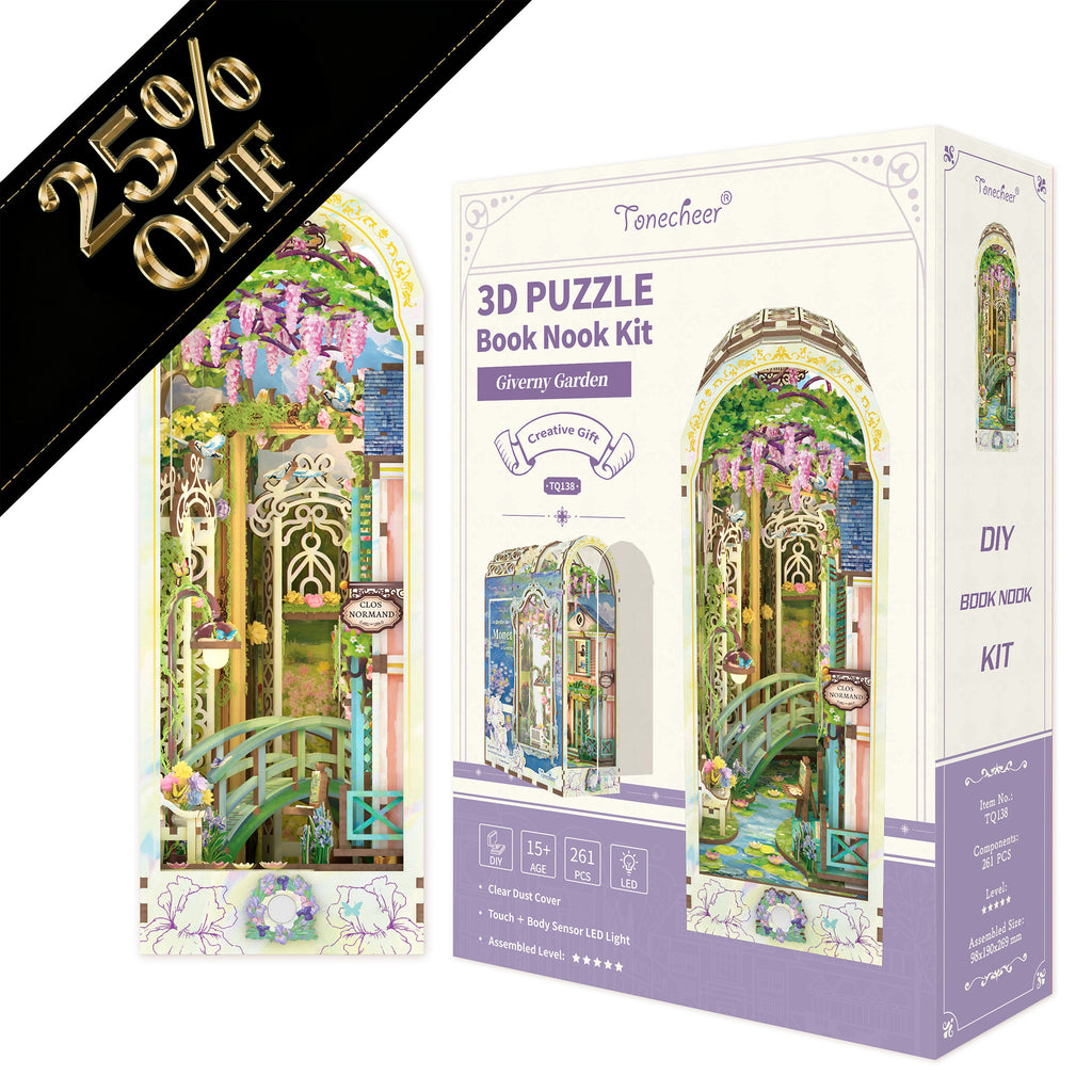 TONECHEER 3D Wooden Puzzle DIY Book Nook Kit (Giverny Garden)