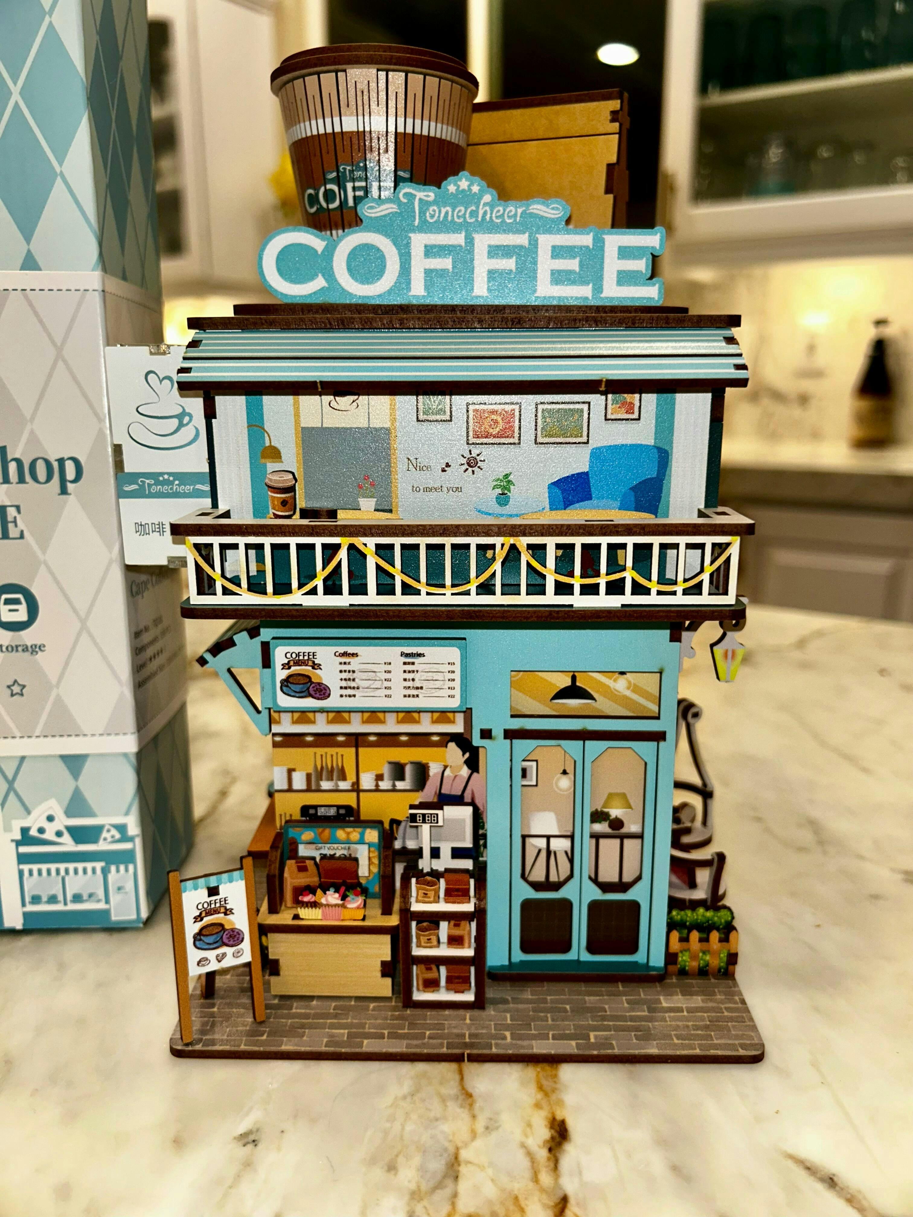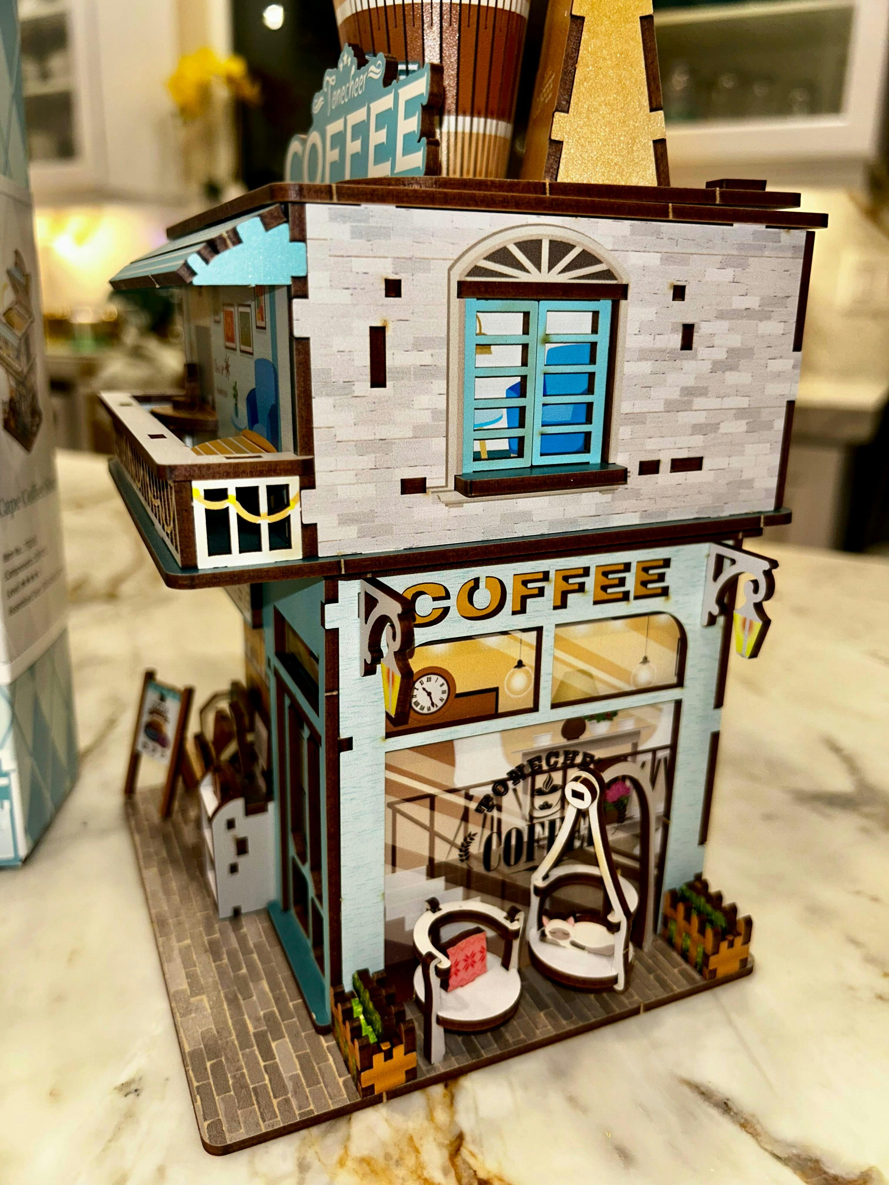 TONECHEER 3D Puzzle Box Miniature DIY Desktop Storage Kit (Cape Coffee Shop)